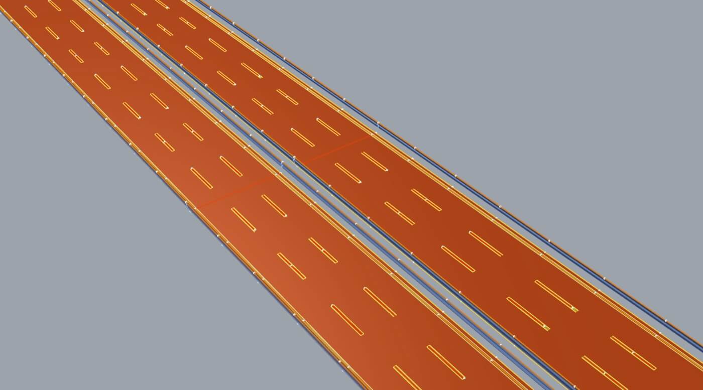 Module 2 transforms the exchange file into high-precision vector geometry and 3D models, seamlessly integrating with industry-standard software like Autodesk Revit, Civil 3D, Rhinoceros 3D, and ESRI tools. The data is sorted by geometry type and reconstructed into accurate CAD elements, starting with linear features enriched with metadata. These elements serve as the foundation for complex 3D surfaces, representing roadways, crash barriers, and lane markings.